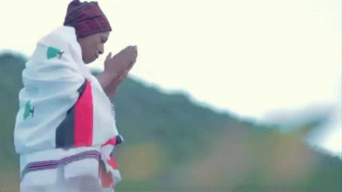 Satura apraksts: a woman is wrapped in a blanket and praying with her hands together .