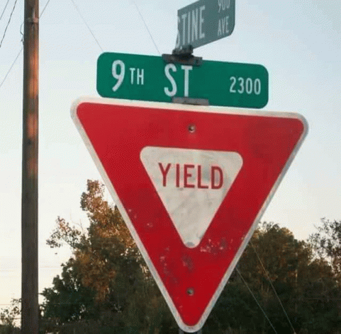 Контентын тайлбар: a street sign for 9th st. 2300 yields