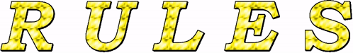 Контентын тайлбар: the word rules is displayed in gold letters on a white background