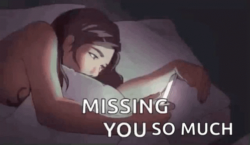 Контентын тайлбар: a woman is laying in bed looking at her phone and missing her so much .