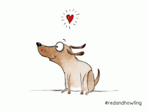 Контентын тайлбар: a drawing of a dog looking up at a red heart with the hashtag #redandhowling