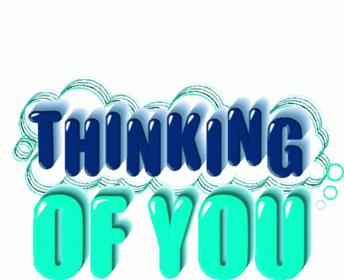 Контентын тайлбар: a sign that says thinking of you in blue letters
