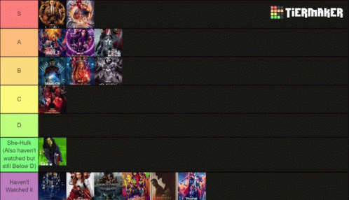 Контентын тайлбар: a tiermaker displays a list of movies including avengers infinity war