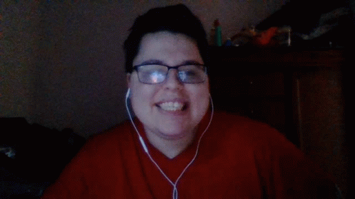 Контентын тайлбар: a man wearing glasses and ear buds smiles for the camera