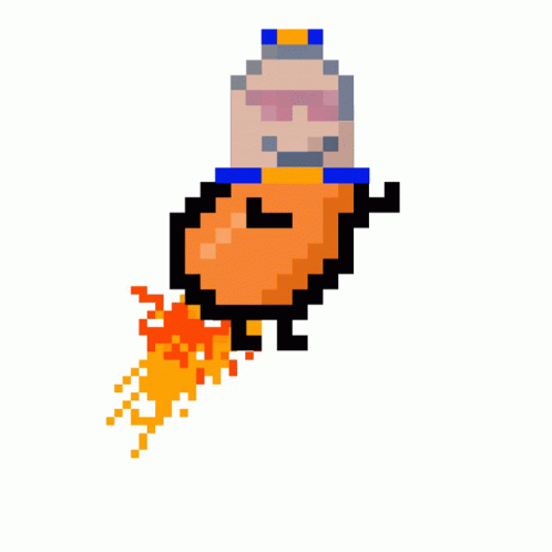 Контентын тайлбар: a pixel art of a person flying through the air with a rocket behind them