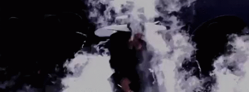 Контентын тайлбар: a person is standing in a dark room with smoke coming out of the ceiling .