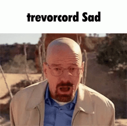 Контентын тайлбар: a bald man with glasses and a beard is making a sad face with the words trevorcord sad above him