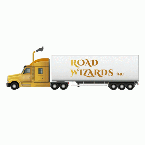 Контентын тайлбар: a yellow truck with a white trailer that says road wizards inc.