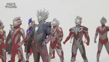 Контентын тайлбар: a group of ultraman standing next to each other in a row .