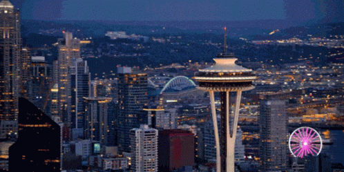 Контентын тайлбар: an aerial view of a city with a ferris wheel in the foreground and the space needle in the background