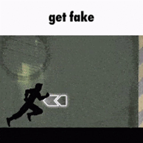 Контентын тайлбар: a silhouette of a man running in front of a sign that says " get fake "