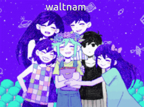 Контентын тайлбар: a group of anime characters are posing for a picture with a purple background and the words waltnam above them