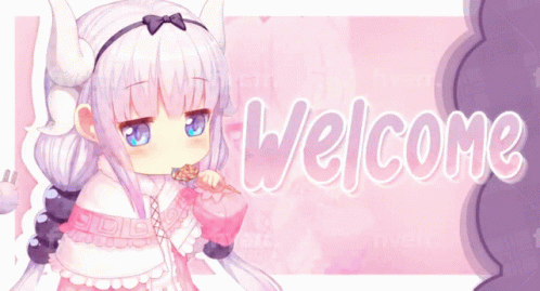 Контентын тайлбар: a girl with horns is holding a lollipop in front of the word welcome