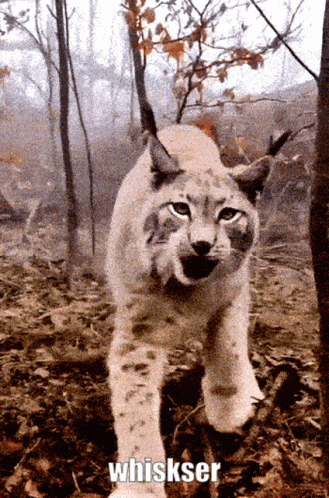 Контентын тайлбар: a picture of a lynx in the woods with the word whisker on the bottom