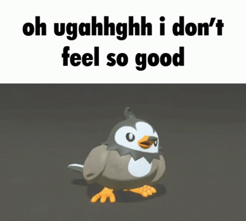 Контентын тайлбар: a cartoon bird with the words oh ugahhghhh i don 't feel so good