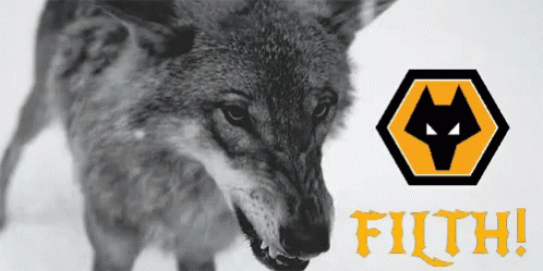 Контентын тайлбар: a black and white photo of a coyote next to a yellow logo for filth