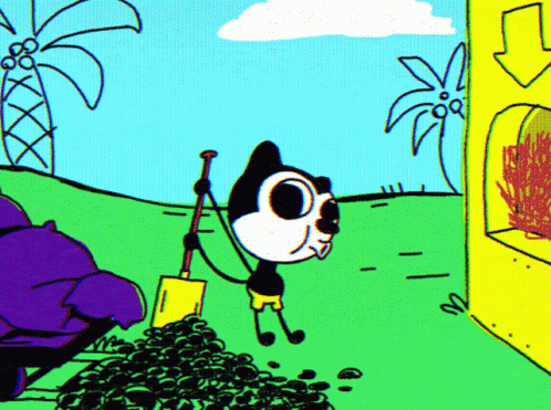 Контентын тайлбар: a cartoon of a cat holding a shovel standing next to a pile of rocks
