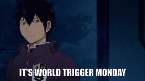 Контентын тайлбар: a close up of a person with the words " it 's world trigger monday " on the bottom