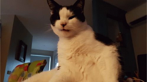 Контентын тайлбар: a black and white cat sitting on a chair in a dark room