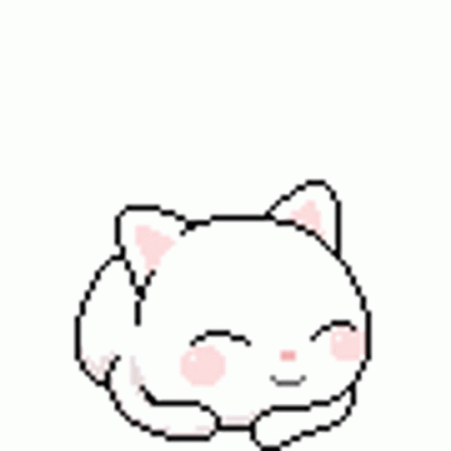 Контентын тайлбар: a pixel art drawing of a white cat with pink ears and a pink tongue .