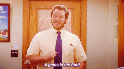 Контентын тайлбар: a man in a yellow shirt and tie says a game is the foot