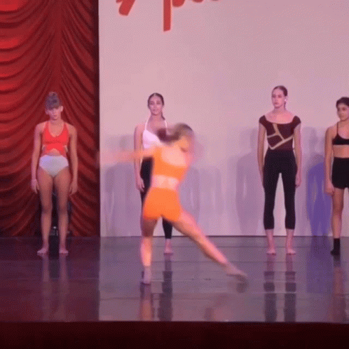 - Контентын тайлбар: a group of young women are dancing on a stage with a red curtain behind them and a sign that says 7