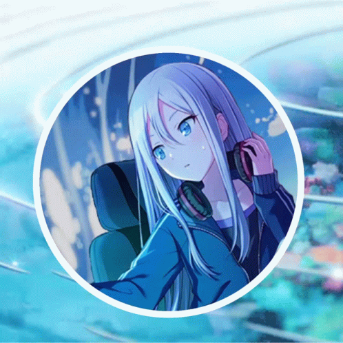 Контентын тайлбар: a girl with long white hair wearing headphones is in a circle