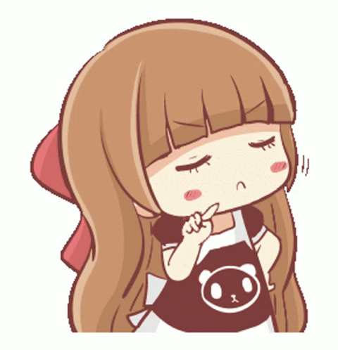 Контентын тайлбар: a cartoon of a girl with brown hair wearing a black apron with a teddy bear on it