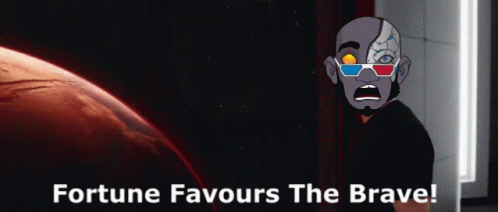 Контентын тайлбар: a cartoon of a man wearing 3d glasses with the words fortune favours the brave on the bottom