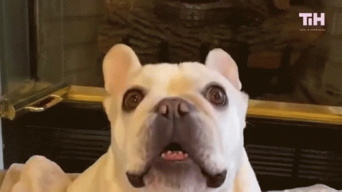 Контентын тайлбар: a french bulldog laying in front of a fireplace looking at the camera
