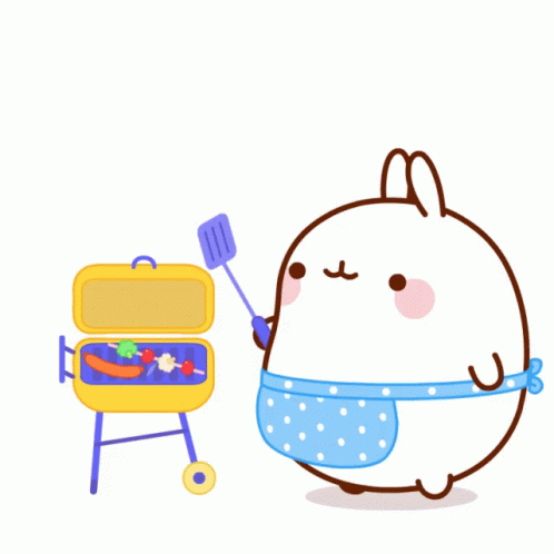 Контентын тайлбар: a cartoon rabbit is cooking on a grill and wearing an apron
