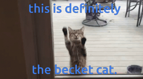 Контентын тайлбар: a cat is looking out a window with the words this is definitely the becket cat