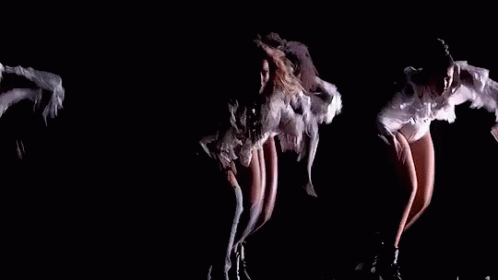 Контентын тайлбар: a group of women are dancing on a stage in the dark .