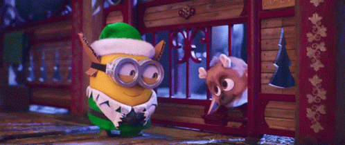 Контентын тайлбар: a minion wearing a santa hat and goggles stands in front of a fence