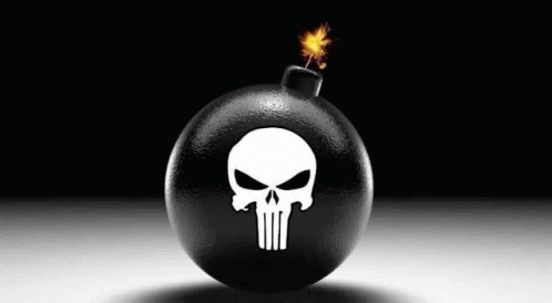 Контентын тайлбар: a black bomb with a punisher skull on it