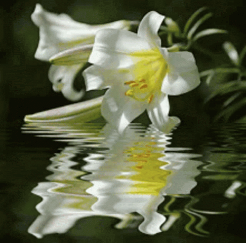 Контентын тайлбар: a white flower with a yellow center is floating in the water