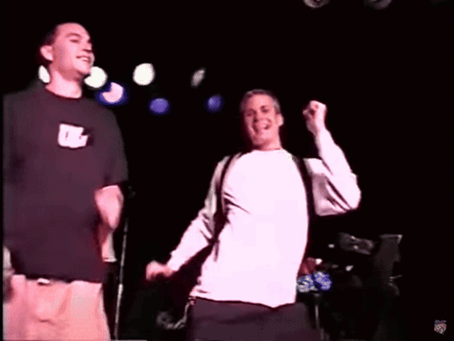 Контентын тайлбар: two men are dancing on a stage and one has a shirt that says dc on it