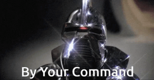 Контентын тайлбар: a robot with the words by your command on the bottom