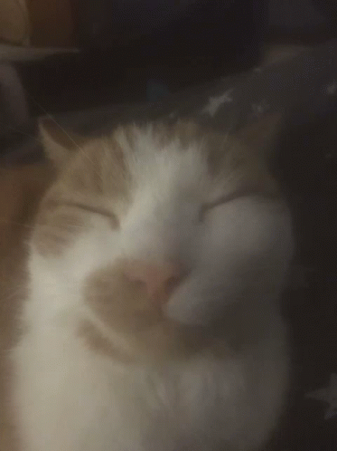 Контентын тайлбар: a brown and white cat with its eyes closed