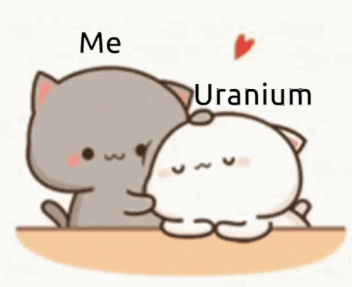 Контентын тайлбар: a cartoon of a cat and a stuffed animal with the words " me uranium " above them
