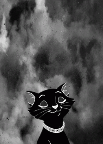 Контентын тайлбар: a black cat with a collar is smiling in front of a cloudy background