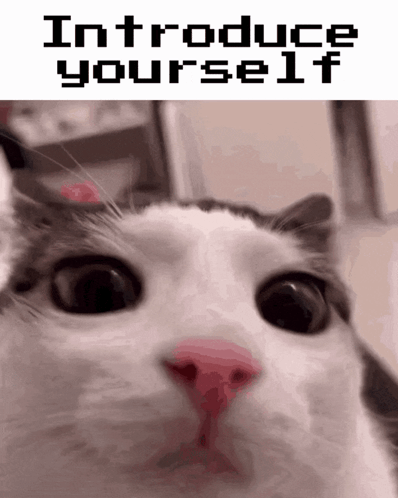 Контентын тайлбар: a close up of a cat 's face with the words " introduce yourself " above it