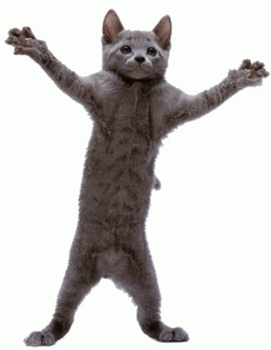 Контентын тайлбар: a gray cat standing on its hind legs with its paws outstretched