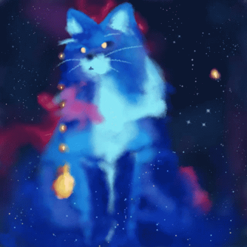 Контентын тайлбар: a painting of a blue and white cat in a space background