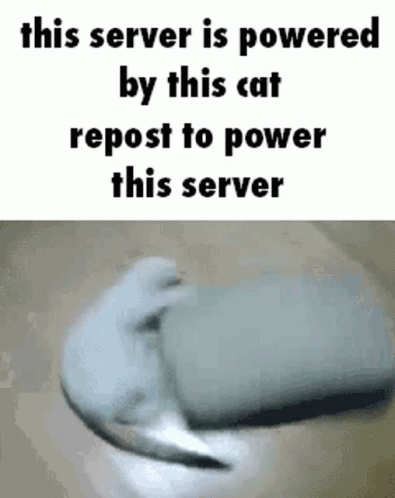 Контентын тайлбар: a picture of a cat laying on a soap bar with the caption this server is powered by this cat repost to power this server