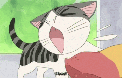 Контентын тайлбар: a cartoon cat with its mouth wide open and the words home below it
