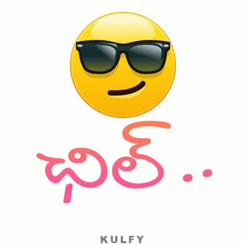 Контентын тайлбар: a yellow smiley face wearing sunglasses with the word kulfy written below it
