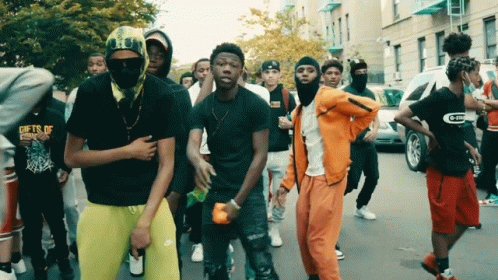 Контентын тайлбар: a group of young men are walking down a street and one of them is wearing a shirt that says gifts of summer