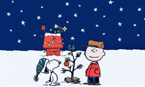 Контентын тайлбар: a cartoon of snoopy and charlie brown with a christmas tree