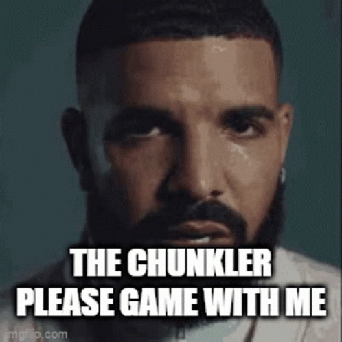 Контентын тайлбар: a close up of a man 's face with the words `` the chunkler please game with me '' .